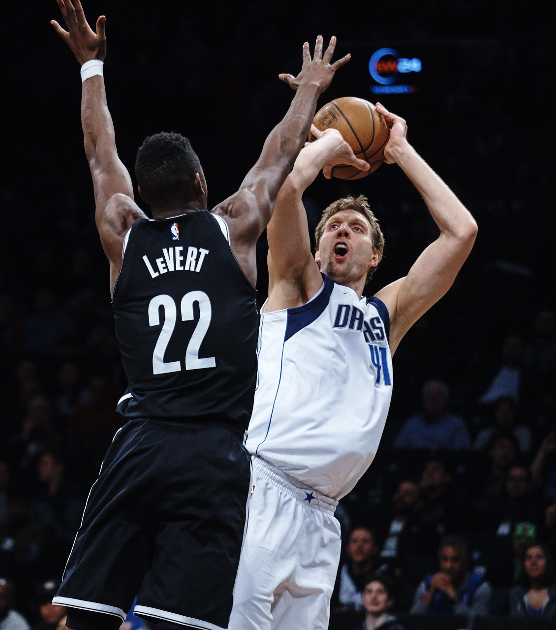 诺天王在独行侠征战了21个赛季,三分命中率达38.0%,他职业生涯场均得分20.7分、7.5篮板、2.4助攻。
